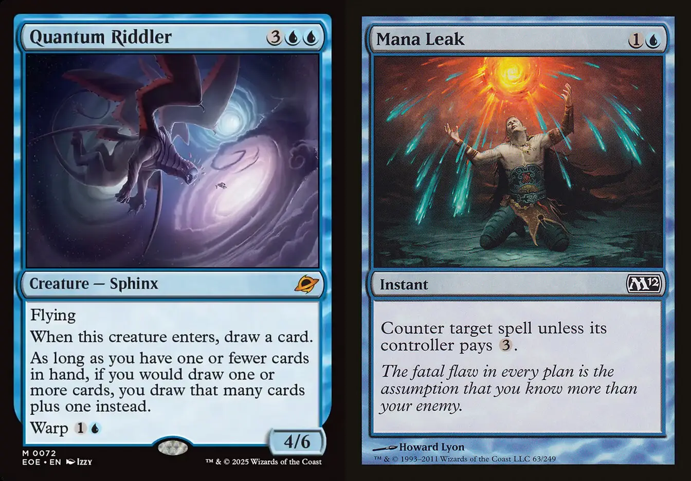 這樣的牌帶回標準。那獲得更強康牌的藍色只會繼續坐大而已。想像一下,藍紅套牌內戰,先手玩家可以四費先出 Quantum Riddler