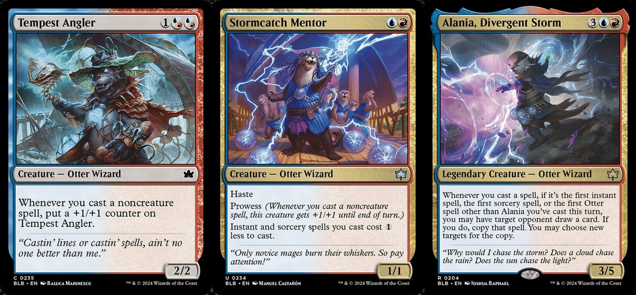 U卡的Stormcatch Mentor乍看之下一卡多功能,但只要你無法施放非生物咒語時牠就會瞬間啞火;C卡的Tempest Angler體格不及格,要至少施放過兩個非生物咒語才勉強進入打手行列,不會讓我很想用牠。