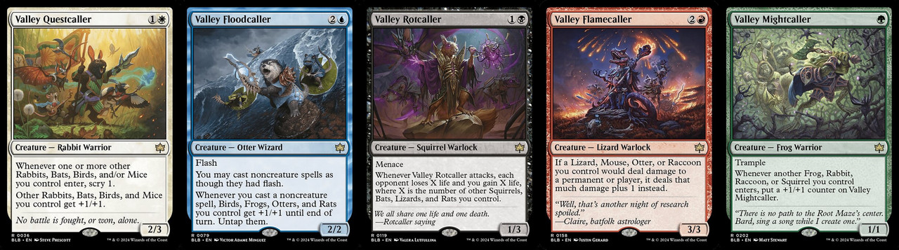 谷喚師是 5 張的單色R卡生物,牠們都可以為該色對應種族帶來如讚美詩的群體膨脹、以及一些特別的效果。