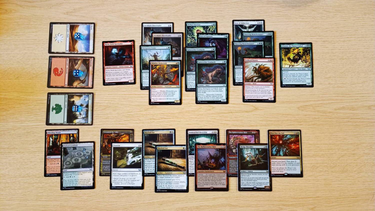 我和網站成員 cephille 一起來到遊戲平方,從下午的四人局展開探索暮悲邸的旅程。第一場,包含售現贈卡共開到兩輛 The Rollercrusher Ride ,再加上出現了 Hedge Shredder 、 Peer Past the Veil 、 Unidentified Hovership 等強力單卡,以及兩根棒棒的 Baseball Bat 棒棒,讓我毫不猶豫地進入了納雅(紅綠白)路線,搭配綠色穩健的五張調色牌及兩張雙色地,我真的認為那是一副很有競爭力的套牌,兩輛The Rollercrusher Ride連發可以終結比賽,就算對手命硬我也趁機達成躁狂了,看見完美組合的我露出了一抹竊笑嘿嘿。
