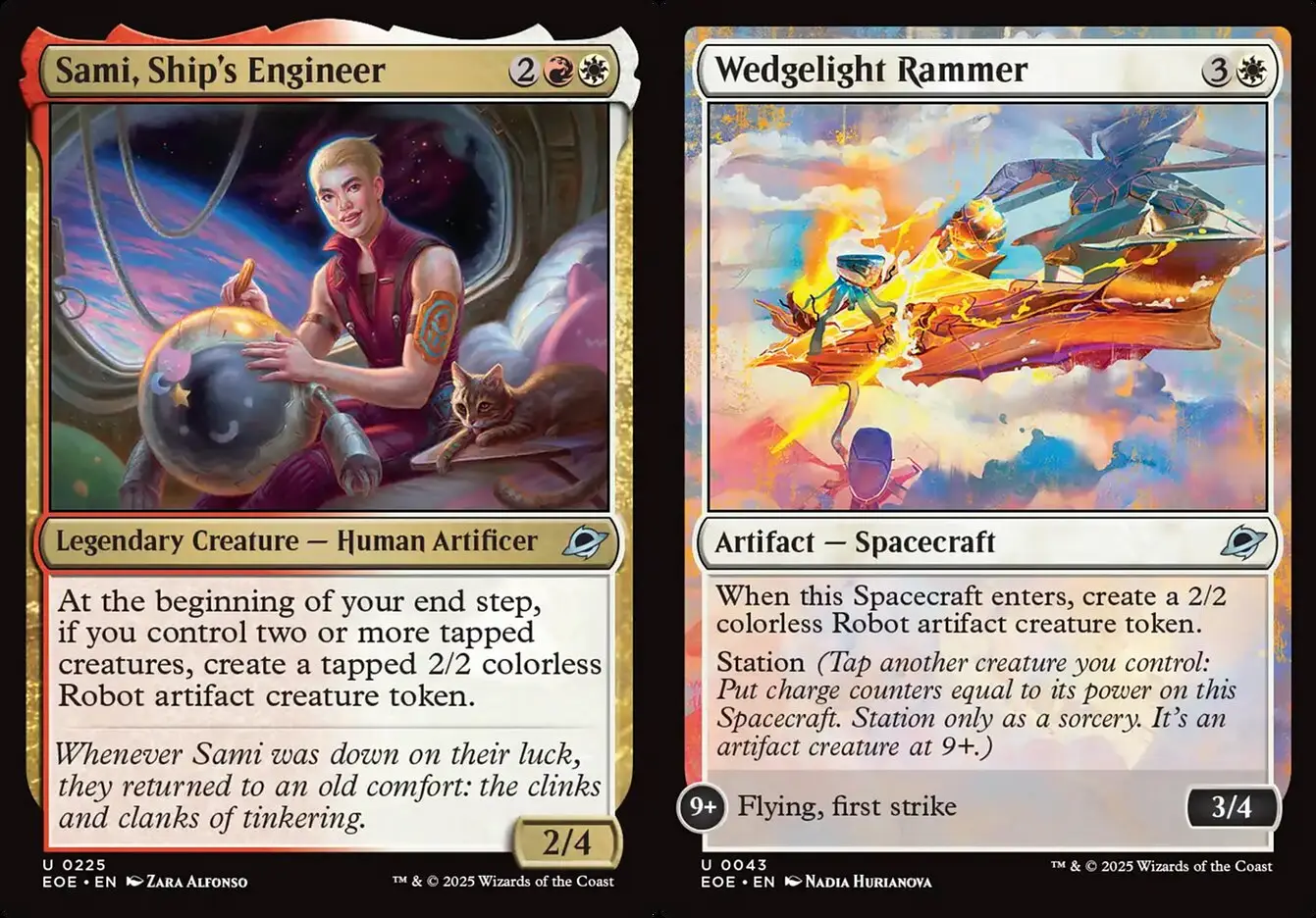 透過橫置生物來蓄勢你的太空船,然後收穫你專屬船員的獎勵。 Sami, Ship's Engineer 關注你的生物是否被橫置,如果達成就可以生更多生物, Sami, Ship's Engineer