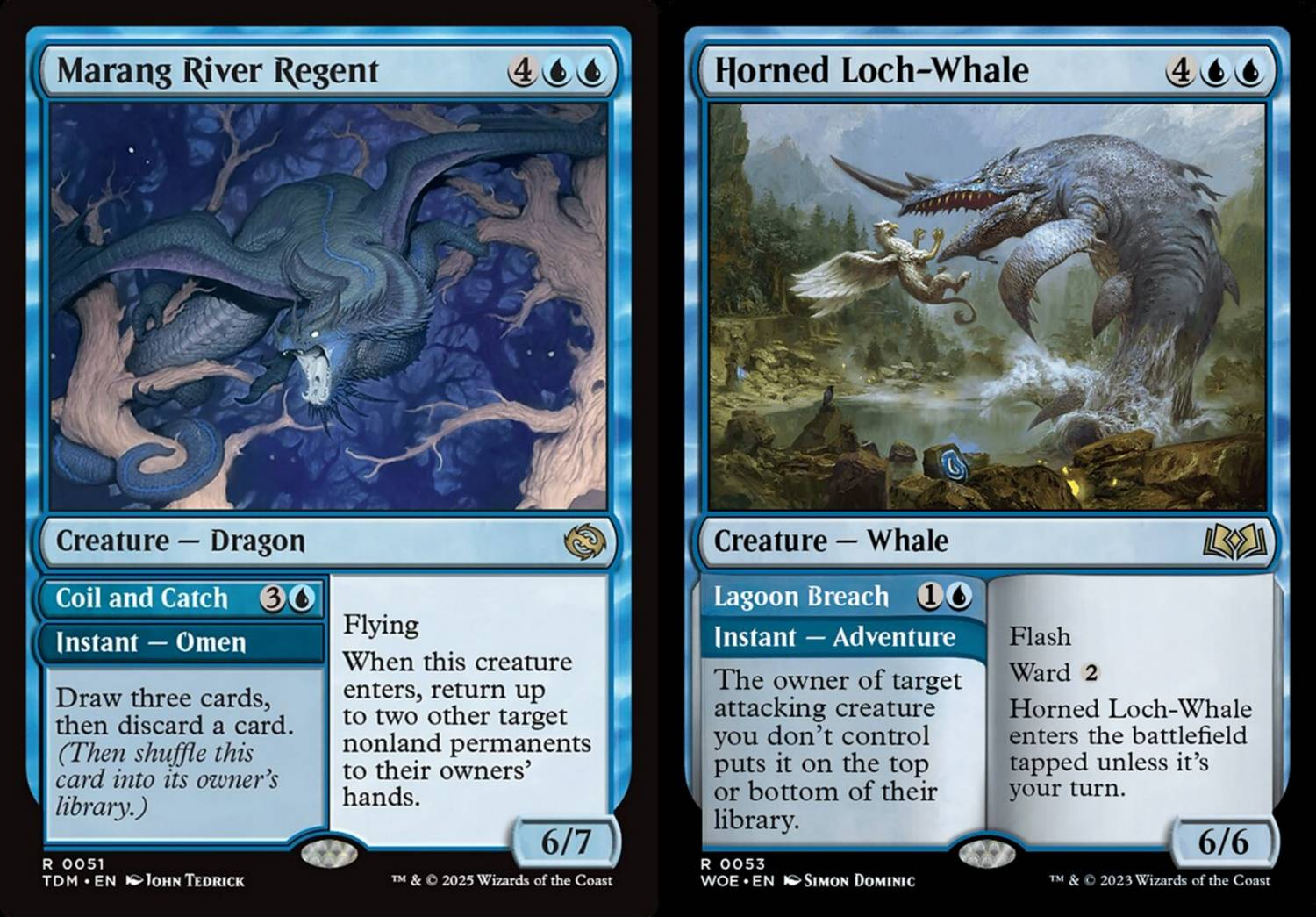 最後還是認為藍龍比鯨魚好,雖然鯨魚的歷險可以作為前期的去處,但以正下來說龍強太多了,很多時候彈兩個東西以及一隻6/7在場上可以救命,omen的抽三棄一也是很好的抽濾。