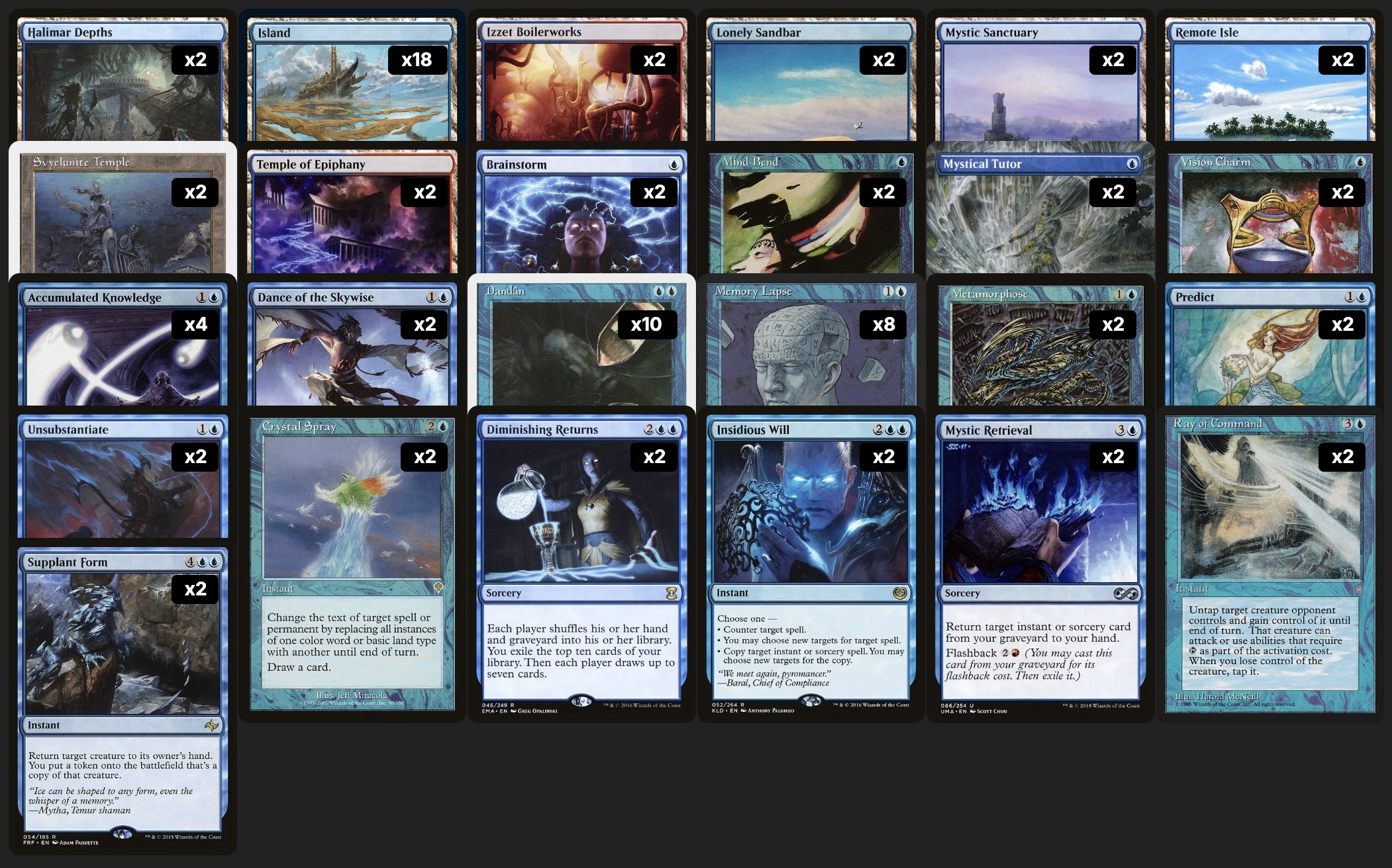 組成,也是名字 Forgetful Fist 的由來,加上許多藍色瞬間咒語,旨在利用牌庫頂、堆疊和 Dandân