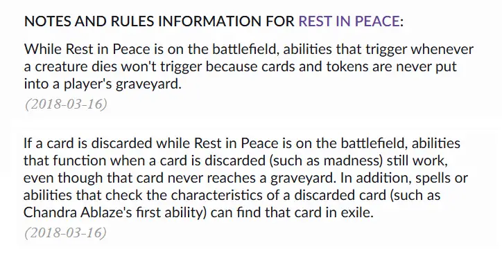 因為這個案例實在太有名又太反直覺了,所以你在Scryfall等卡片搜尋引擎找RIP時,都可以在下方找到這條規則釋疑: