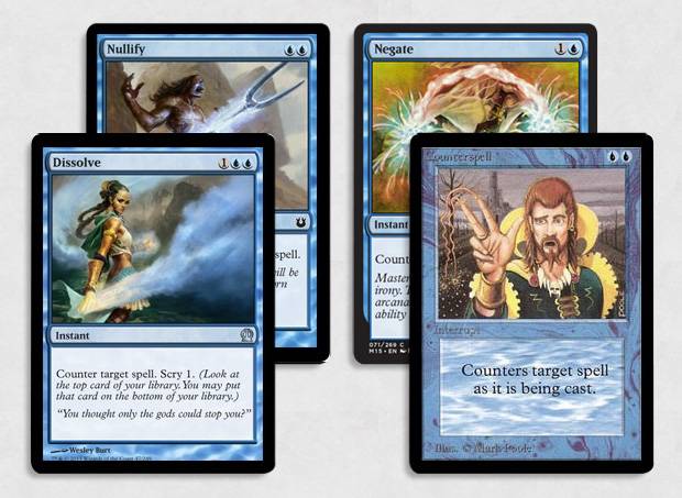 這類牌也因其敘述、並致敬其經典的始祖而被稱為「反擊咒語」(counterspells)。(「反擊咒語」本身以今日的標準來看過於強大,已經多年未再印刷。)註2