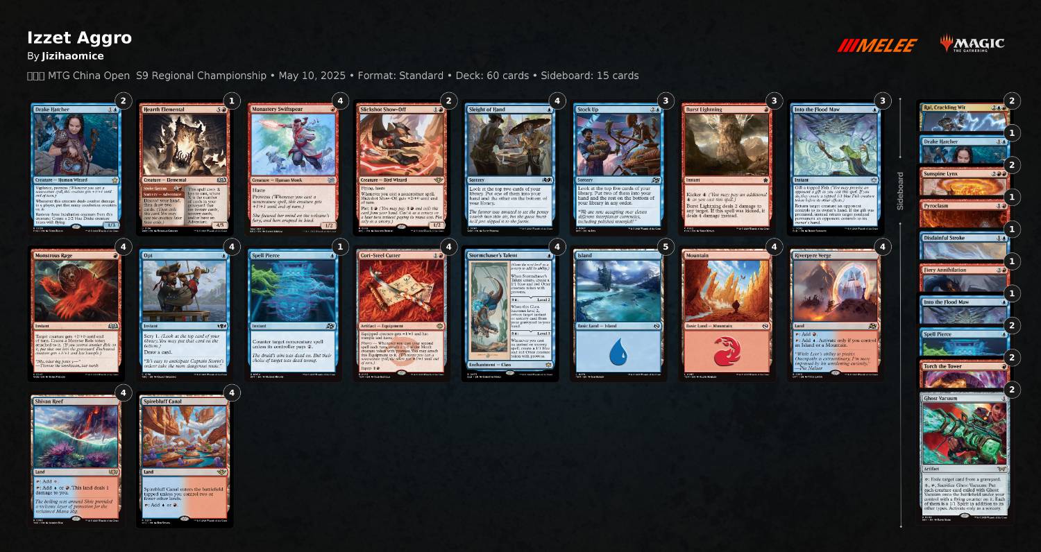 這是連續贏了3個MO Challenge的伊捷靈技,可以發現最大的改變就是正編完全放棄了Burst Lightning,並且看得出來這個構成就是很針對內戰,備牌計畫在我看來倒是沒有特別的亮點。