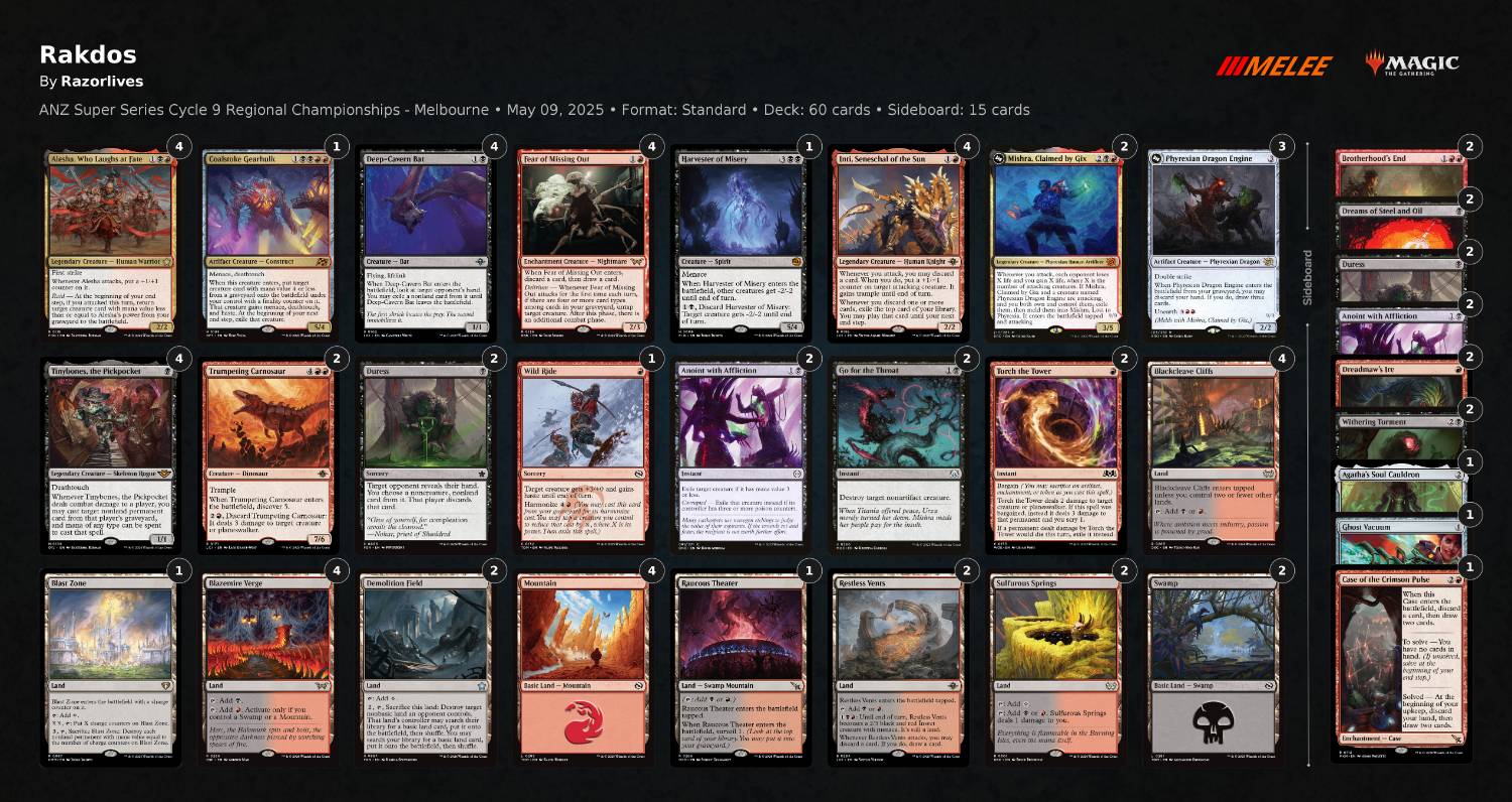 亞軍的紅黑中速,在這次比賽前完全沒有人看過的套牌,也是唯一一套我有看直播對局的套牌,看完的感想是,亞軍的運氣很好,組牌很有想法,但我完全不會列入考慮。