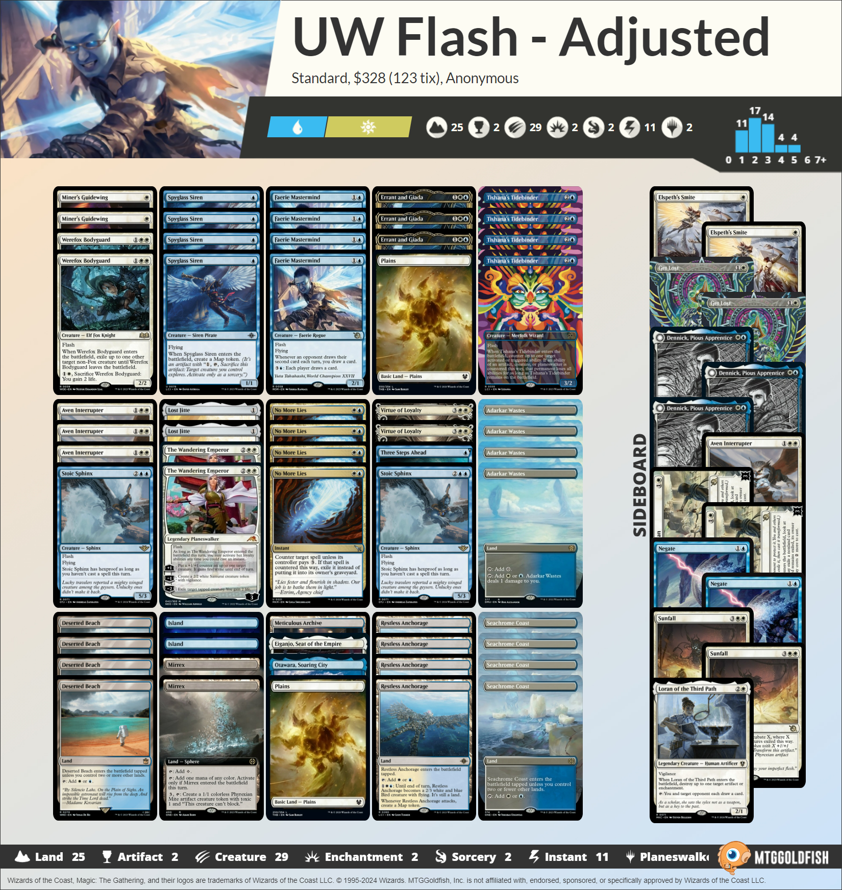 然而,考慮到標準環境將有止咒高僧,白藍閃現在止咒高僧登場後的節奏將會變得非常的笨重,而以巫術時機登場來看大部分的生物都比對手的生物小不只一圈,能不能找到即時解掉止咒高僧、或阻止他進場的有效方法,將會是白藍閃現是否能在新標準順利存活的一個指標。