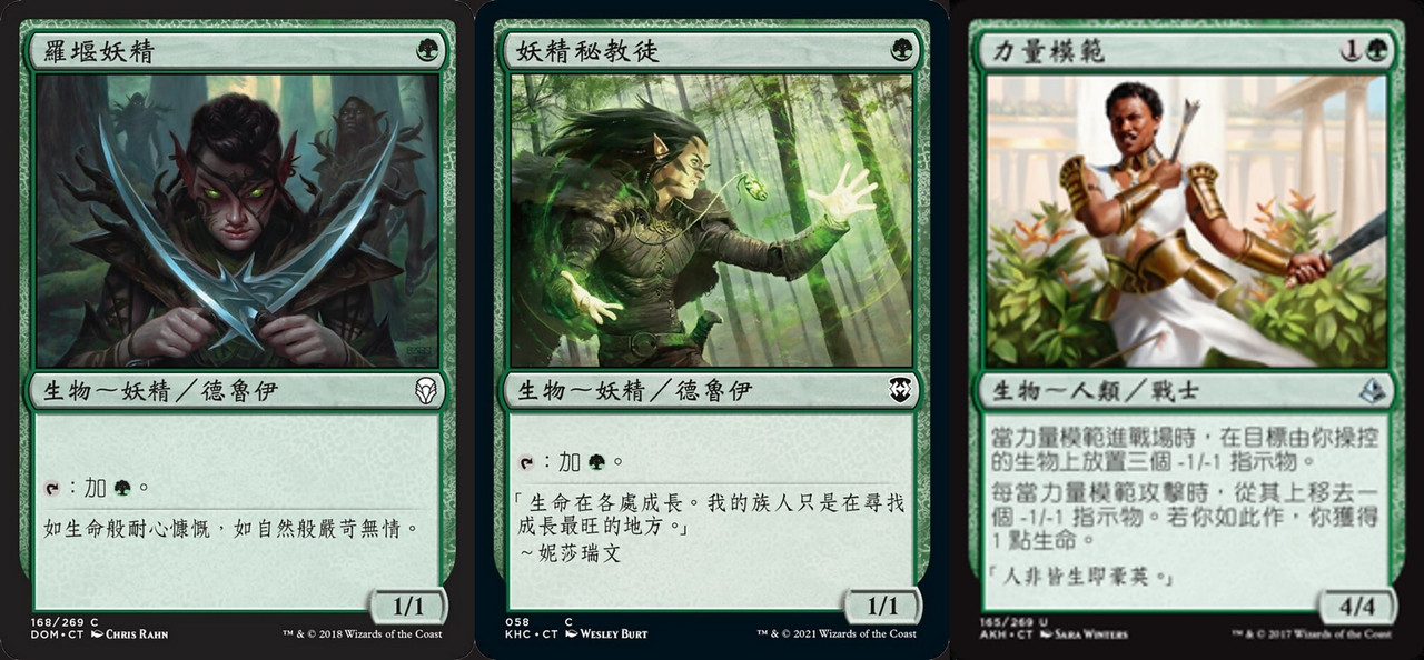 這副套牌本質上是古魯強攻,除了作為核心元件的刺針背懼龍、薩坎解印與一費魔法力基底羅堰妖精、妖精秘教徒外,薩坎解印的威猛需求也讓新系列的莽野幫開路人成為打手兼加速兼補充手牌的重要元件。再來就是去除兼打手的定番碎骨巨人以及兩費力量4的力量模範填補曲線。