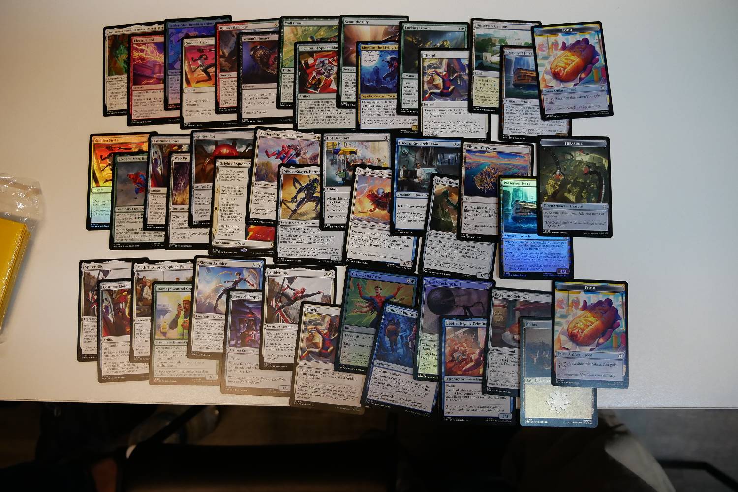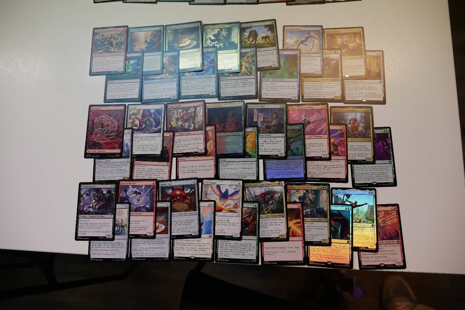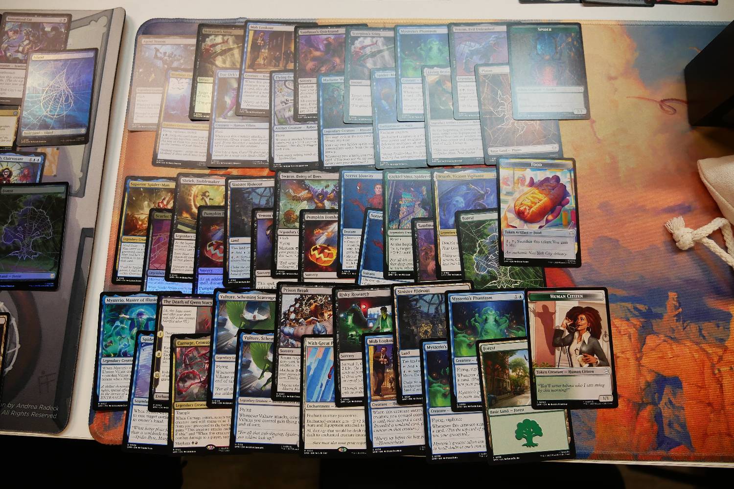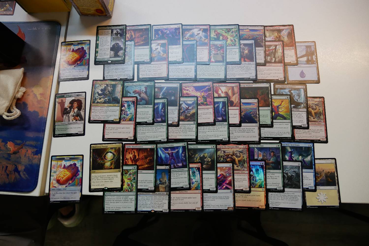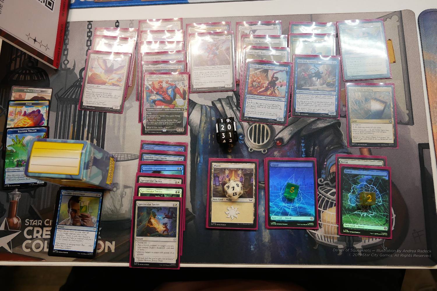 今天有一個回合,靠著Supportive Parents跟兩張Spider-Man, Brooklyn Visionary,一回合重複來回進場刷了超多張地,每有一隻生物跟兩費就可以做一次循環,刷個兩個回合牌庫就沒有基本地了,雖然看起來很秀,但那一場還是被對面飛兵打死了。