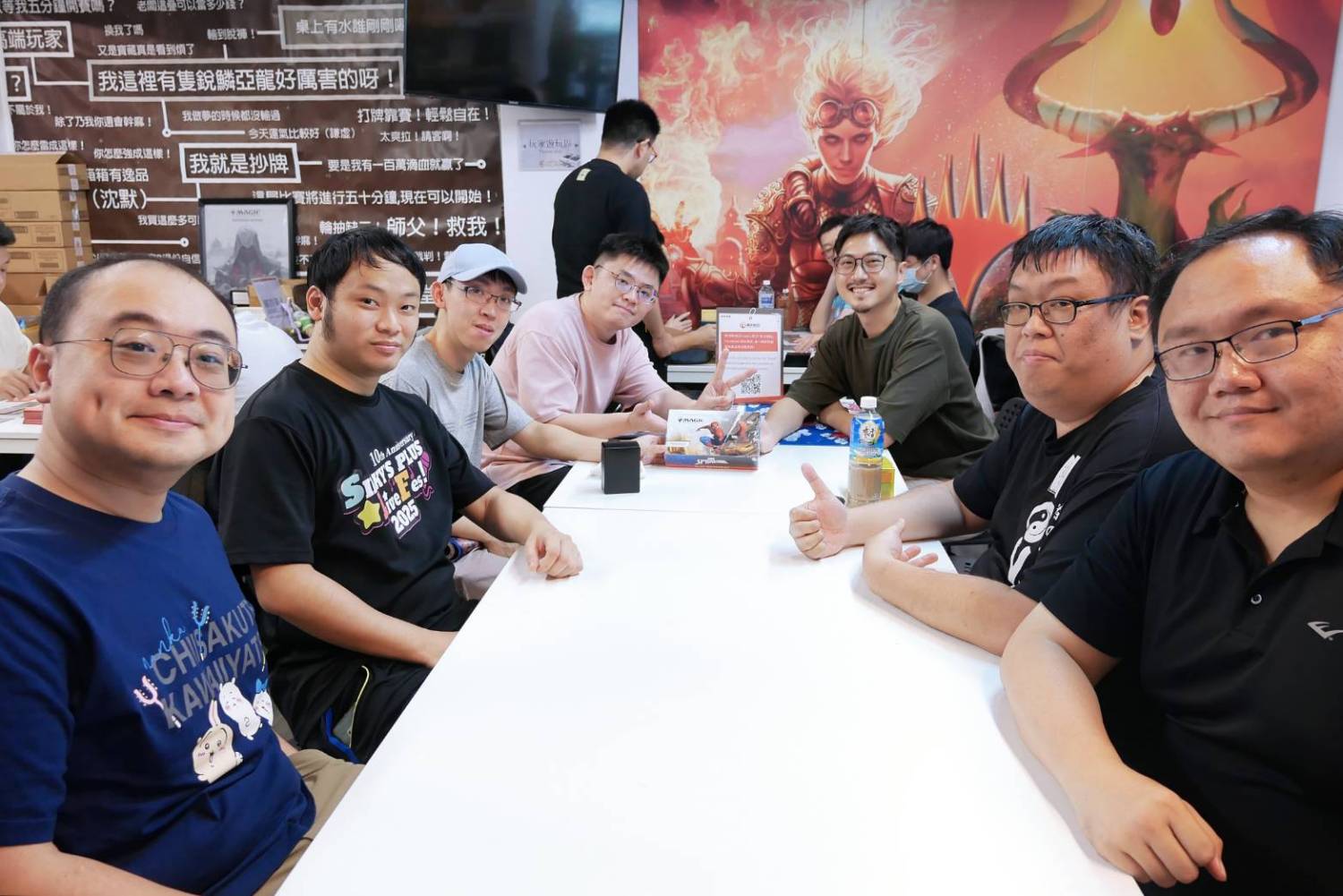 我覺得整體的氣氛相當不錯,除了能體驗到剛上市不久的新系列(原本興趣不大,但這次玩完有點意猶未盡),也從跟老手的交流討論上釐清了不少自己在選牌跟組牌的盲點,感覺限制賽功力又上升了一點,也感謝王靖大大的邀請、以及贊助此活動的睿卡潮玩跟遊戲平方。