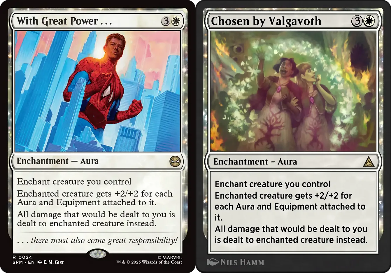評語:能力越大,責任越大。這是一張能建立強大生物的靈氣,除了進攻的生物交換優勢外,還能協助玩家承受傷害,是一張攻防一體的單卡。
