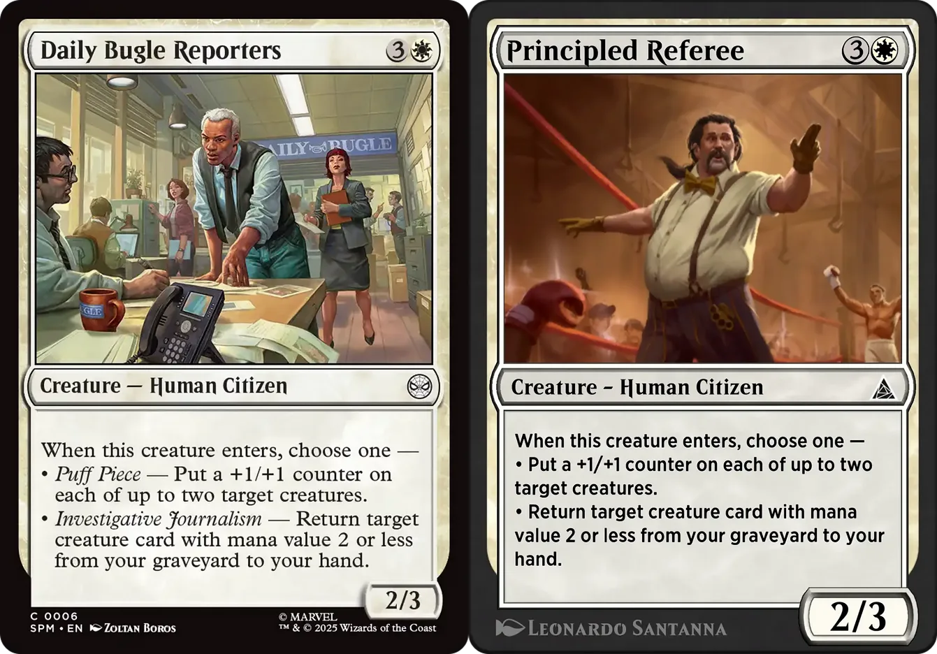 本次白色沒有太多特別優秀的單卡,但每張單卡都能夠穩定的表現,此外多色牌中有許多像是Gallant Citizen、Mary Jane Watson及Spider-Woman, Stunning Savior等混色魔法力的單卡,都是相當值得投入牌組中的,適合喜歡一步一步建立優勢,穩紮穩打的玩家。