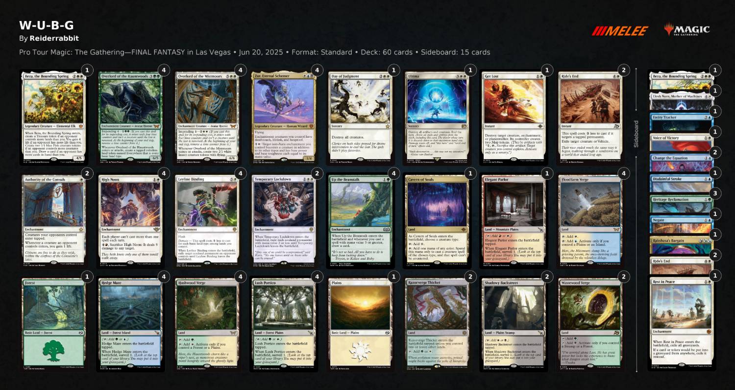 - 正編2張Authority of the Consuls:為了應對快攻套牌而做出的激進選擇,而以紅快與紅藍靈技合計高達53.2%的出場率,也印證了這樣的判斷是合理的。不過我自己是認為在非公開卡表的比賽中可能不會那麼理想;若無法預期對手的計畫,我可能會選擇更多的Beza或者掃場。