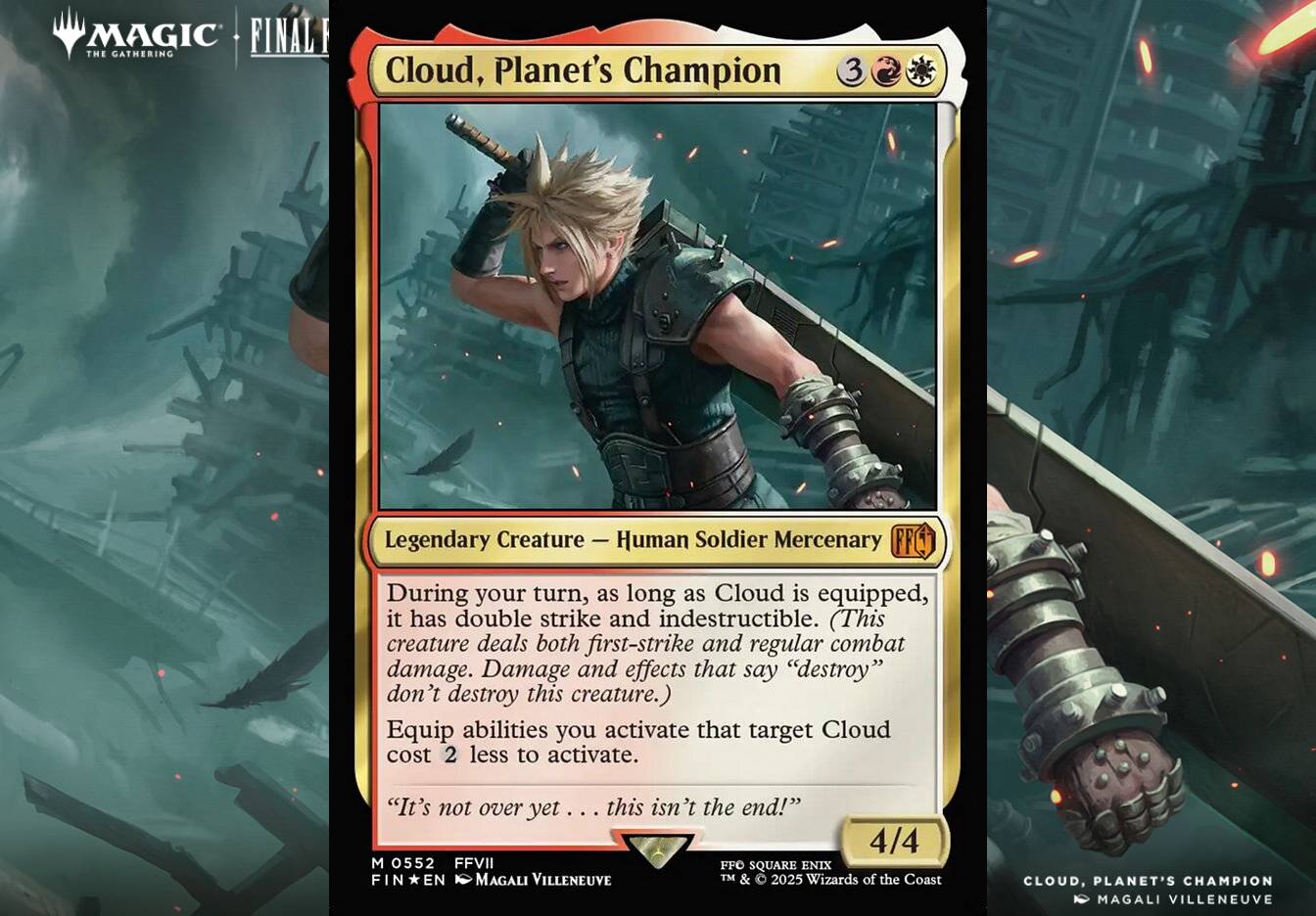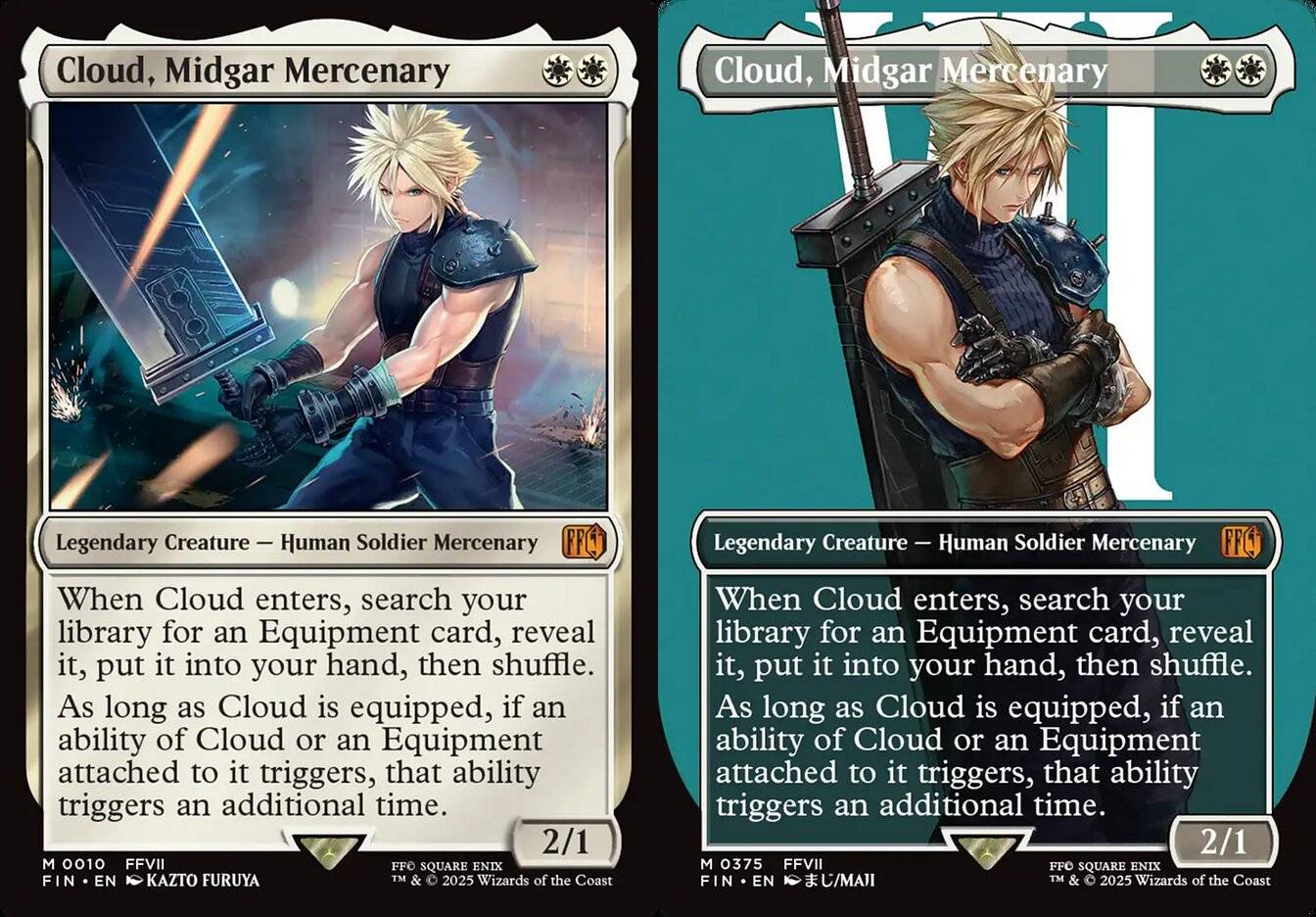身為整個《FINAL FANTASY》系列作中最知名的主人公,補充包克勞德的設計明顯是致敬鍛石秘教徒,同樣是進場找武具上手,但不能像秘教徒一樣直接空投武具,而是有佩帶武具時武具及他自己的觸發異能都會額外觸發一次,這讓他在裝備有觸發式異能的武具時(如他的代表武器毀滅劍或是賦予守護的熔刺靴)時可以發揮雙倍效果。除了補充包版本外,標準牌池還有另一張克勞德: