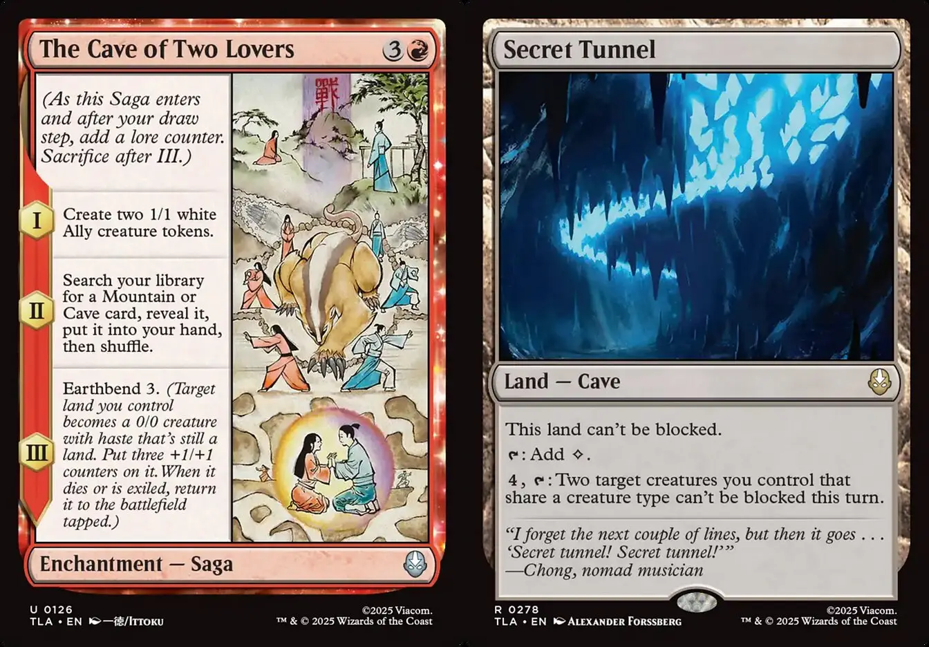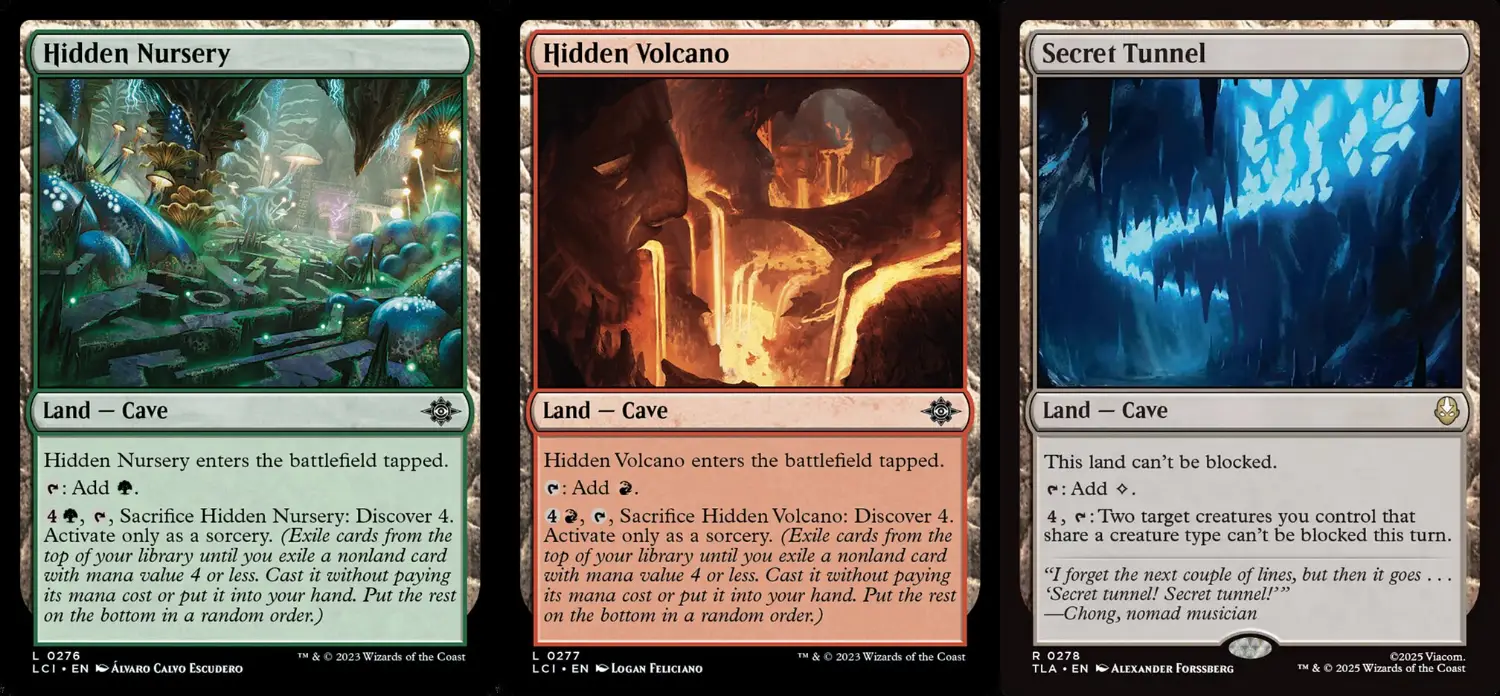 在《降世神通》故事中,相傳情人洞是運土神通的起源地,於本系列分別以其傳記與地牌秘密隧道做重現,也是本系列唯一的洞窟牌。無獨有偶的,《伊夏蘭迷窟》正好有一整組的洞窟主題可以做搭配。究竟兩張新牌能給洞窟套牌帶來多少強化呢?