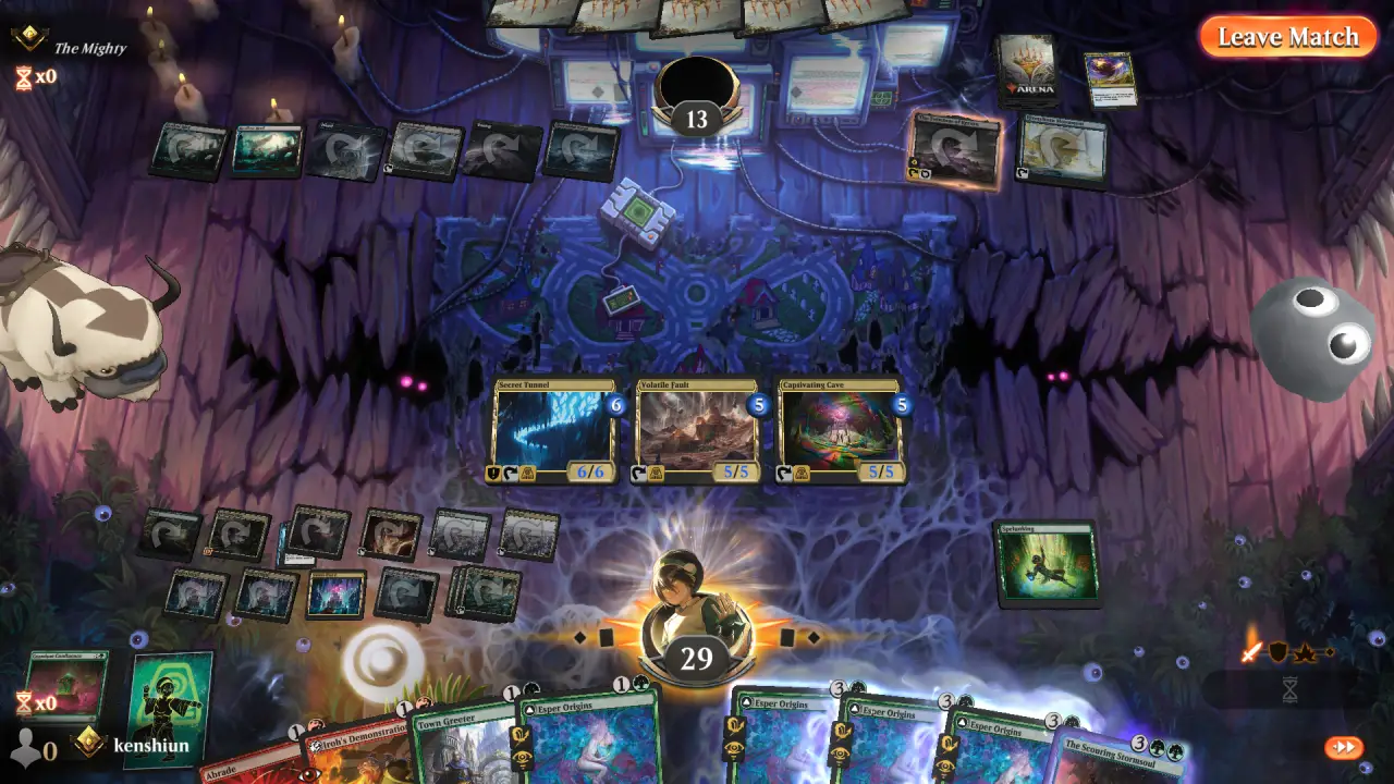 以一套實體造價可能不到1000元的套牌來說,這套洞窟無論是對快攻還是控制都有不錯的戰鬥力,正編點燒與大小掃場能夠壓制對手生物展開,且以運土神通為主力的進攻手段也足夠讓傳統控制頭痛。筆者在MTGA測試時就有一場和艾斯波控制對戰,明明是Bo1的對局,雙方整整纏鬥了40分鐘,最後是筆者地牌一波全推決出勝負,顯見在長期戰的表現也是不容小覷。