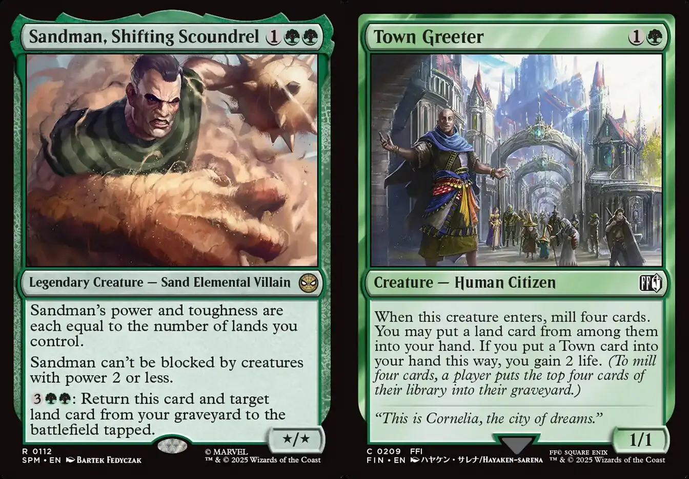 生物方面,筆者選擇放一張運沙神功本體(?)多變惡棍沙人,沙人是依照你操控的地牌數量來決定身材,在加速套牌中體格經常可以養到兩位數以上,同時他還可以從墳場拉著地牌重新回場,對缺少放逐手段的中慢速套牌來說,是難以處理的持續威脅。另外還有進場磨四取地的迎賓鎮民,在前期缺地時幫你過濾地牌上手,同時把多餘的洞窟或返照咒語磨進墳場,提高套牌運作穩定性。