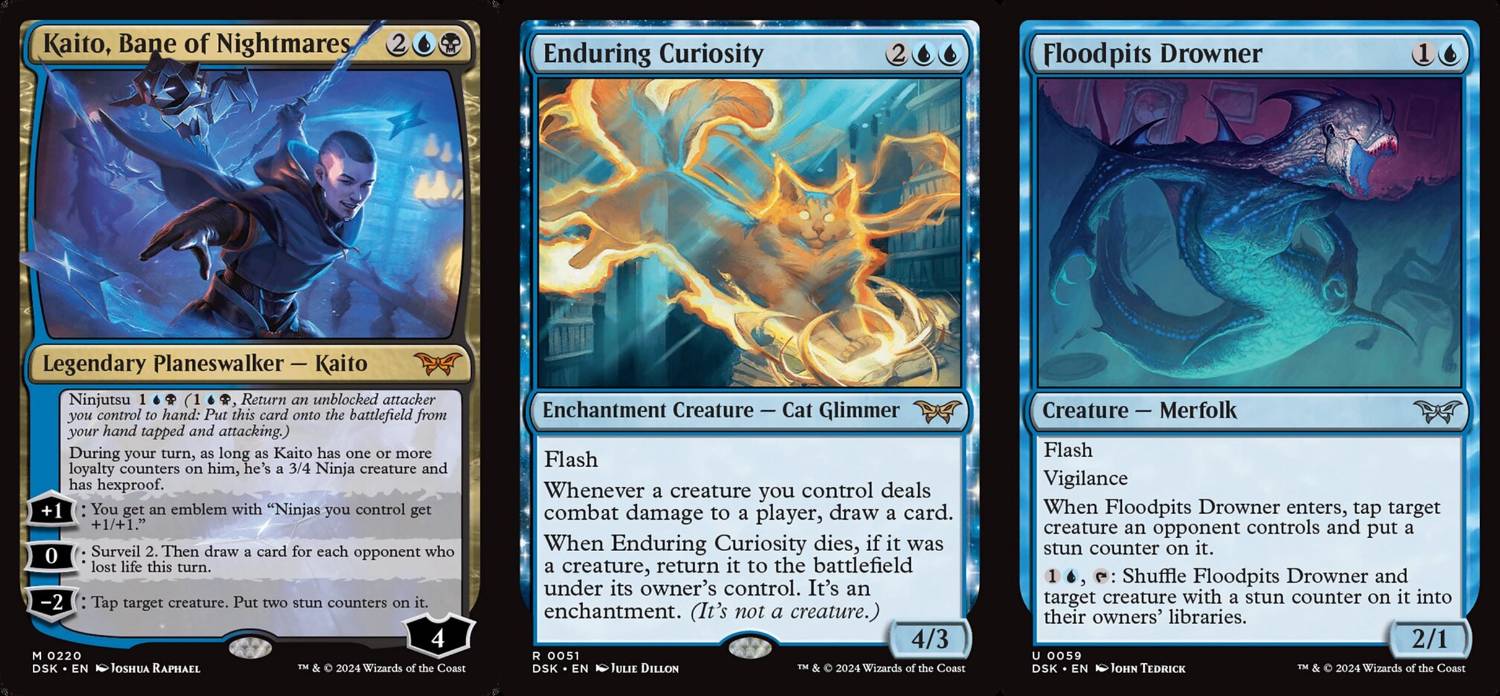 這一版的構築因為之前topdeck總是摸Spyglass Siren越用越爛,超不爽乾脆拔掉,而新星Floodpits Drowner以及Kaito, Bane of Nightmares(魁渡)仍在測試階段,很客氣地只各放了2張;後來發現大錯特錯,在紅底快攻崛起前,他們都是基本3張起跳的超重要套牌核心。