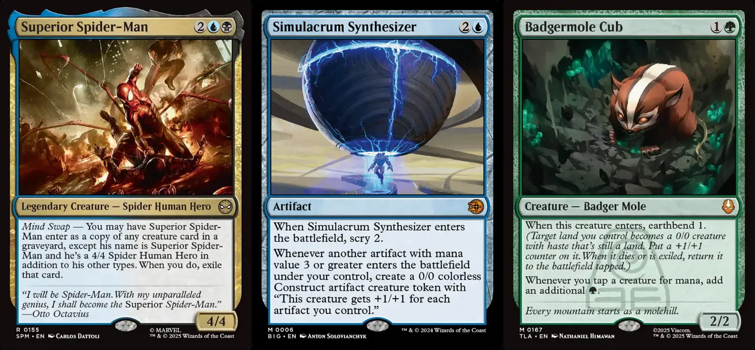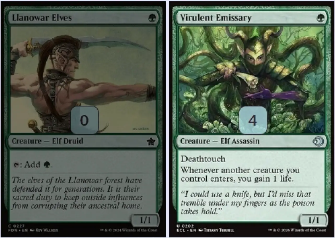 另一方面,羅堰妖精也是個很突兀的存在。這套預組二回跳三費只能拍個勵志監管使,看不出有加速的需求,而且羅堰妖精中後期抽到也是毫無影響力,顯然不是合適的選牌。因此,筆者將羅堰妖精抽換成新系列的劇毒密使,密使在讓你其他生物進場時會獲得生命,穩定觸發明光模範的異能同時增加玩家生存力,自帶死觸可以嚇阻對手的地面生物,還能用星空牧者找上手,和預組有著相當高的契合度。