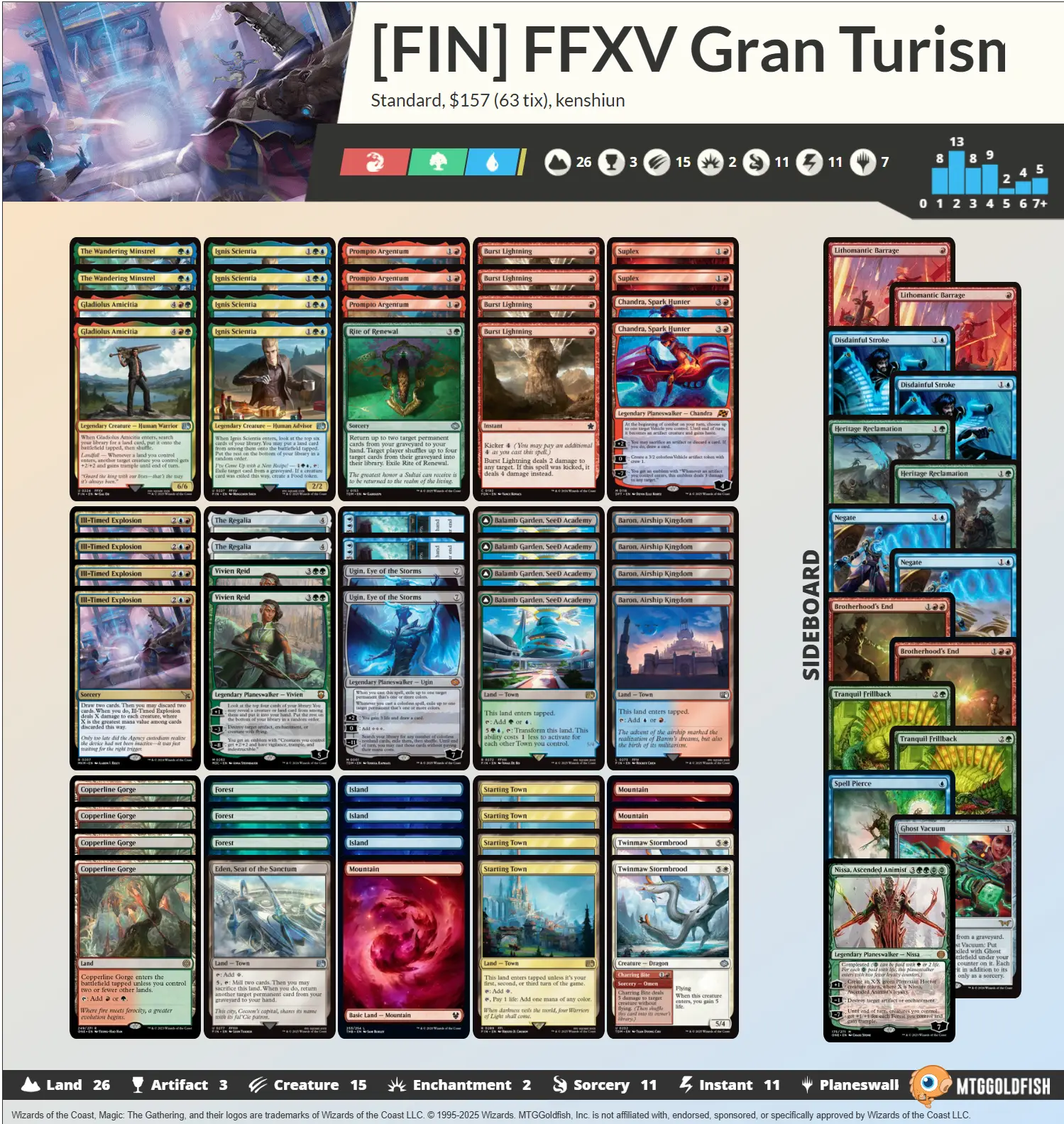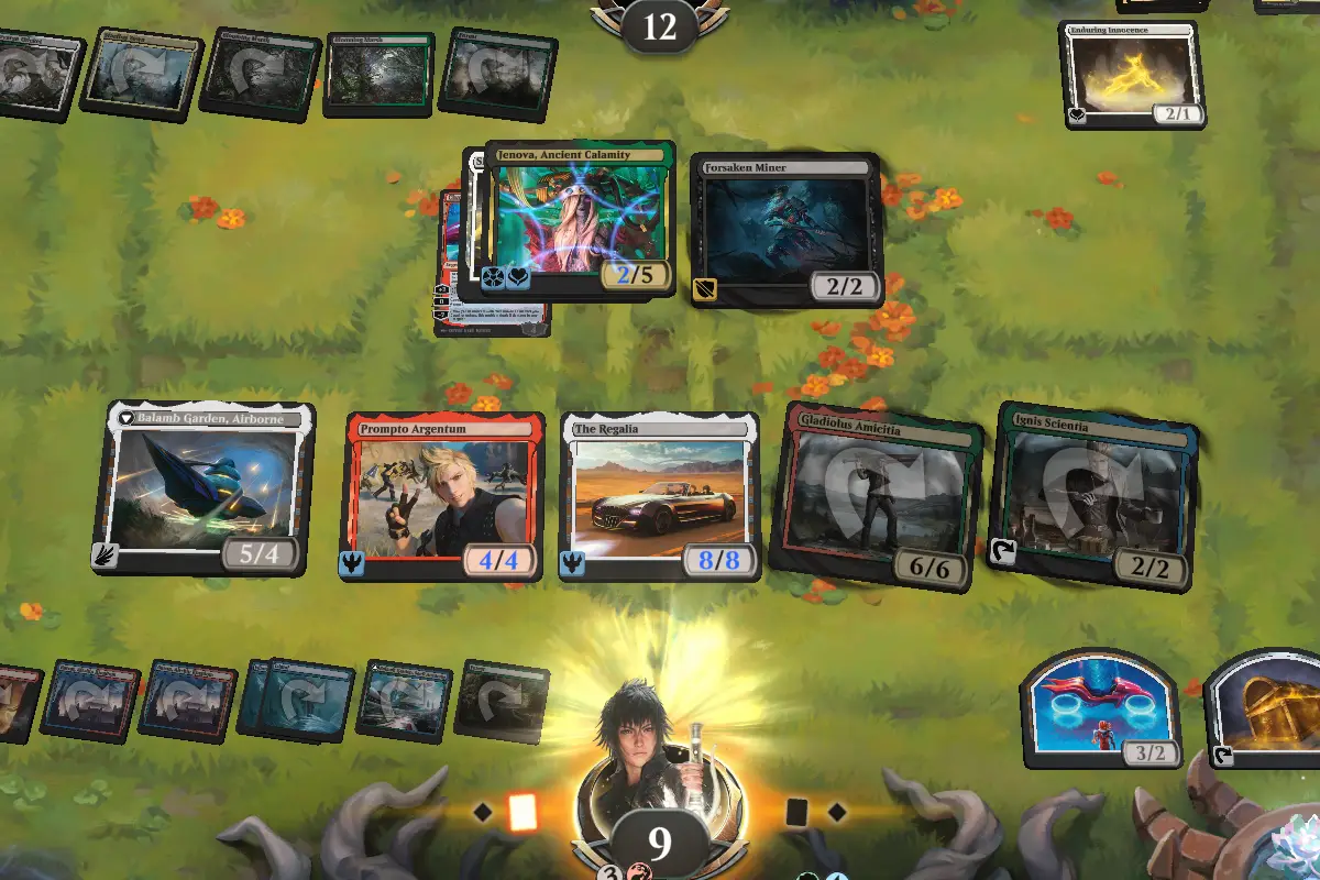 雖然乍看之下是一副趣味的玩梗套牌,實際上在中長期戰表現頗強勢,測試下來對抗控制與一般中速的勝率很不錯,只是因為色組去除射程限制,對上超展開類型(例如大生物挖墳)的套牌容易跟不上,不是個適合Bo1的牌型。至於主角諾克提斯,因為顏色不對、異能也不搭,實在放不進套牌,好在MTGA可取得諾克提斯的頭像與牌套,才能順利湊出FFXV的組合。推薦給喜歡該作的讀者!