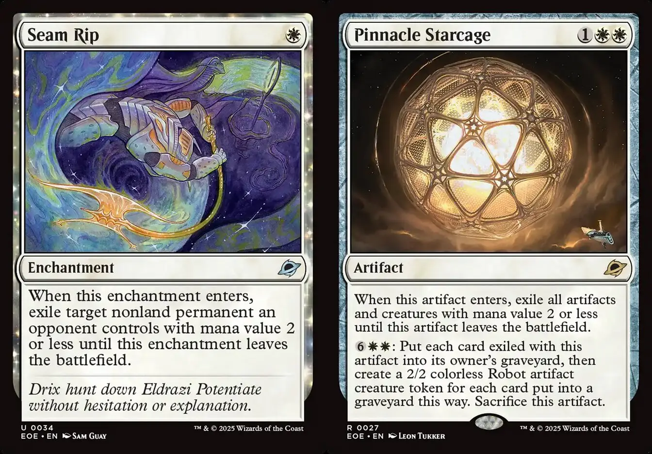 那麼回到我們套牌本身,紅快的應對有比藍黑節奏&白藍控制困難嗎? 答案是不只有,而且差距非常懸殊。紅快難處理的第一點是尖鳴宿敵&旭日脊山貓的補血封鎖+直傷能力,真的強到讓我覺得是設計錯誤的失控牌(老威你還記得當年的莽闖暴猛龍為何會被禁嗎),另外一點則是新牌新星殘虐者也是個難以被妥善應對的強力威脅,這套防禦飛兵的關鍵阻擋者是白霸主生的昆蟲Token,但新星殘虐者ETB就能解掉一隻,而且Warp結束會離場這點對牠反而是優點,因為這樣能躲過掃場,甚至是我方掃完場後下回合又進來敏捷痛扁一頓,進攻節奏完全無縫,我方瞬間正殺也沒這麼多,這也是執政官威權現在面對紅快變的比以前更加重要的原因之一。