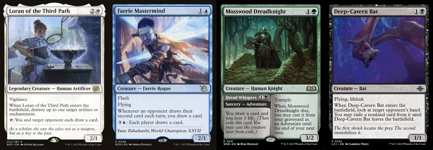 沒錯,事實上這些單卡所屬的套牌,沒有一個擁有超過 2% 的 Meta 占比,僅僅是為了篩選出七張牌,我就已經拉到 Meta 占比 0.2% 的套牌了。至於 DSK 的新牌們,或許難阻刀客、育種織網蛛、怪體追蹤人、好奇爍光體有機會在零星套牌中看見它們的身影,但相信也不會達到太主流的占比。榮譽提名的祖爾應該是上列牌張中前景最看好的了。