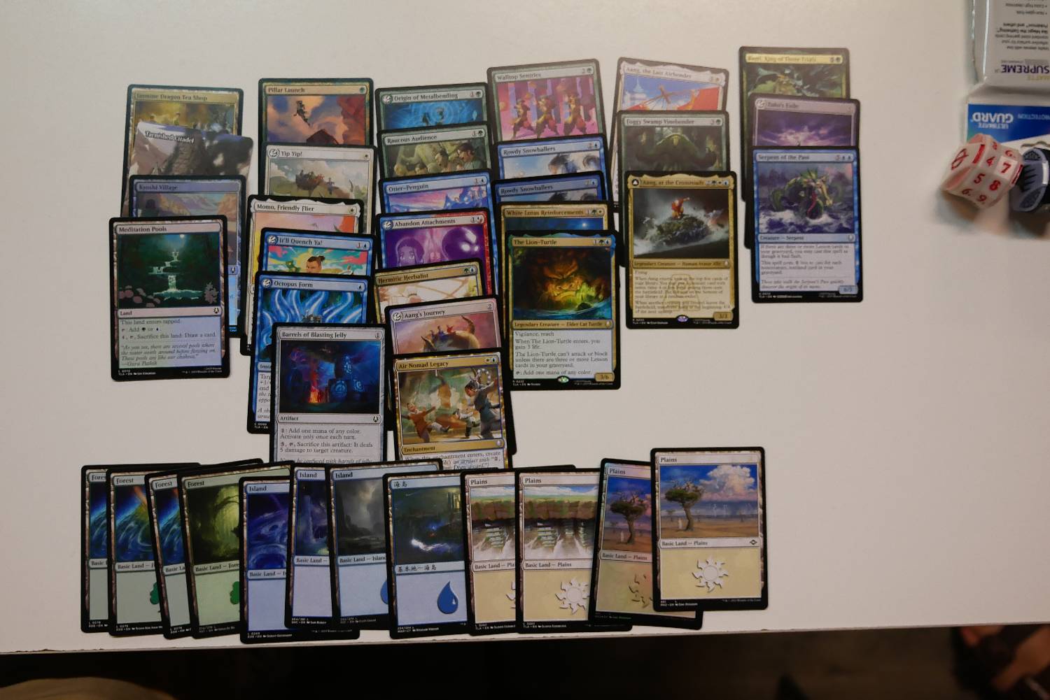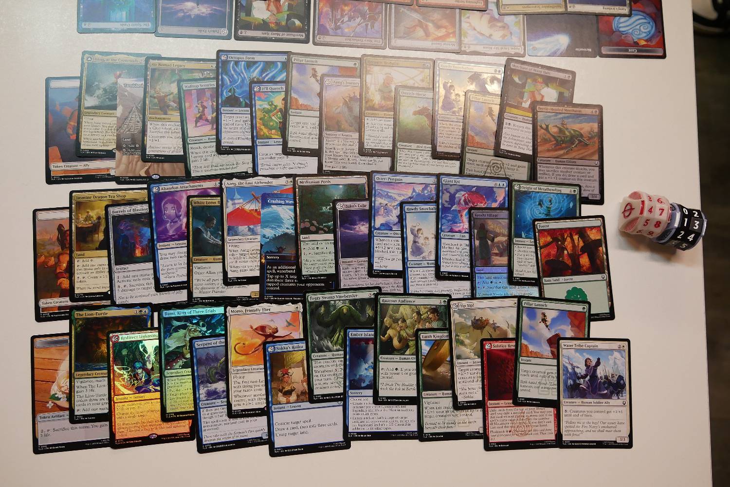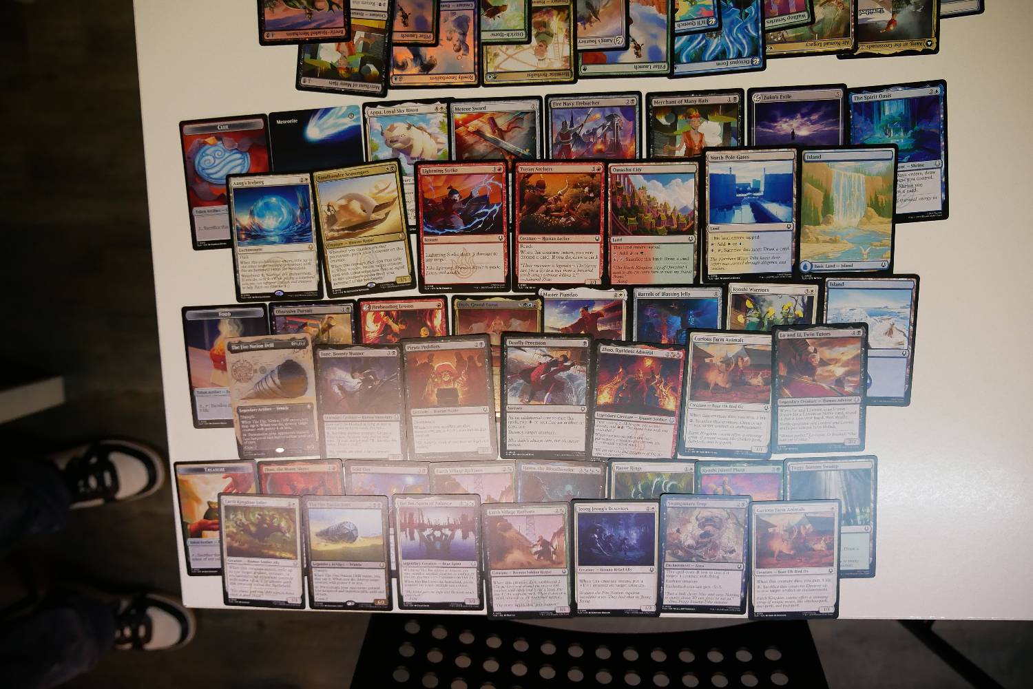 印象最深的是第二輪某一局的關鍵回合。當時我用五費把Aang, at the Crossroads拍下來,結果翻頂五張時剛好看到Aang, the Last Airbender。因為進場能把另一張 Aang 給 Airbend,我下個回合再花兩費把他叫回戰場,又能再觸發一次 ETB。整個連動超級噁(但也超爽呵呵),是今天最好玩的瞬間之一哈哈哈。