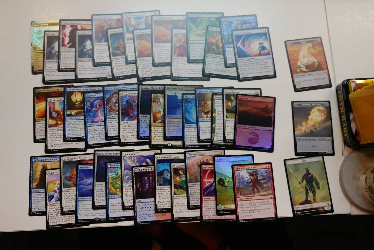 一開始我拿了大量的白色咒語,打算往純白的方向去抽。直到Sokka, Tenacious Tactician出現,由於第一包結尾有拿到Trusty Boomerang,我便想組一套以Sokka, Tenacious Tactician為主題的牌組。