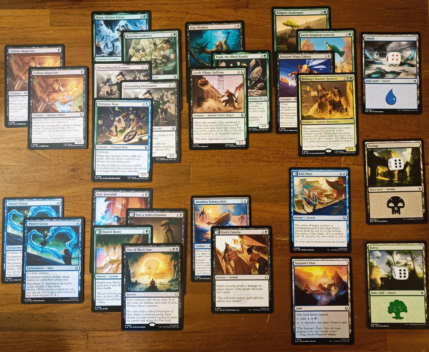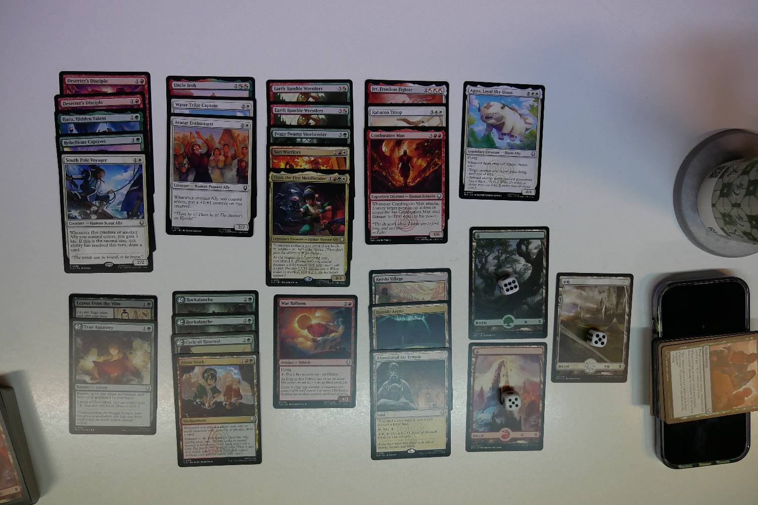 雖然第一pick是Toph, the First Metalbender,原本是打算走Earthbend路線,但後面傳來的Haru, Hidden Talent則是讓路線走向了Ally路線,後面的料也開始往Ally選,最後的Abandoned Air Temple,則剛好讓這三張可以契合在一起。