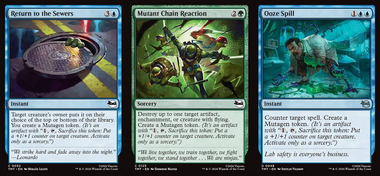 突變劑機制牌有12張,主要分佈在藍綠色組,有11張;另有1張傳奇神器牌 The Ooze