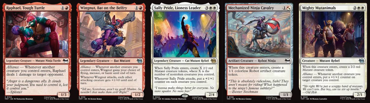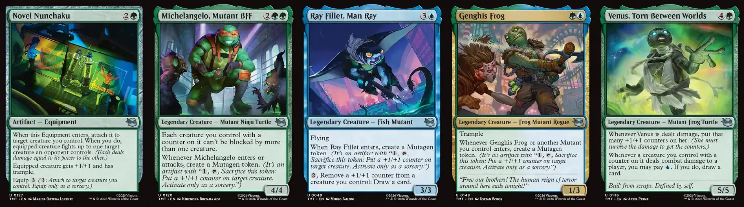 。 - 突變體(Mutant):61張,五色都有。而如果僅計入非忍者、非龜的突變體(Mutant)的生物的話則有28張。