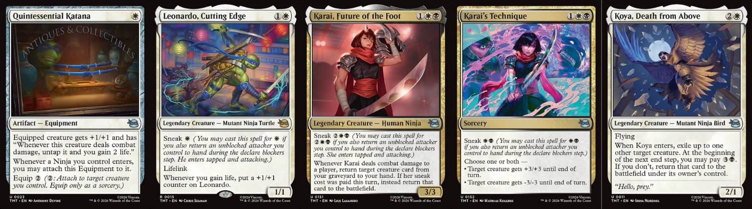 可能更偏後期(但它也有一個 {一}{白} 獲得先攻的起動式異能)外,其他4張都很適合做為你的忍者起動點。