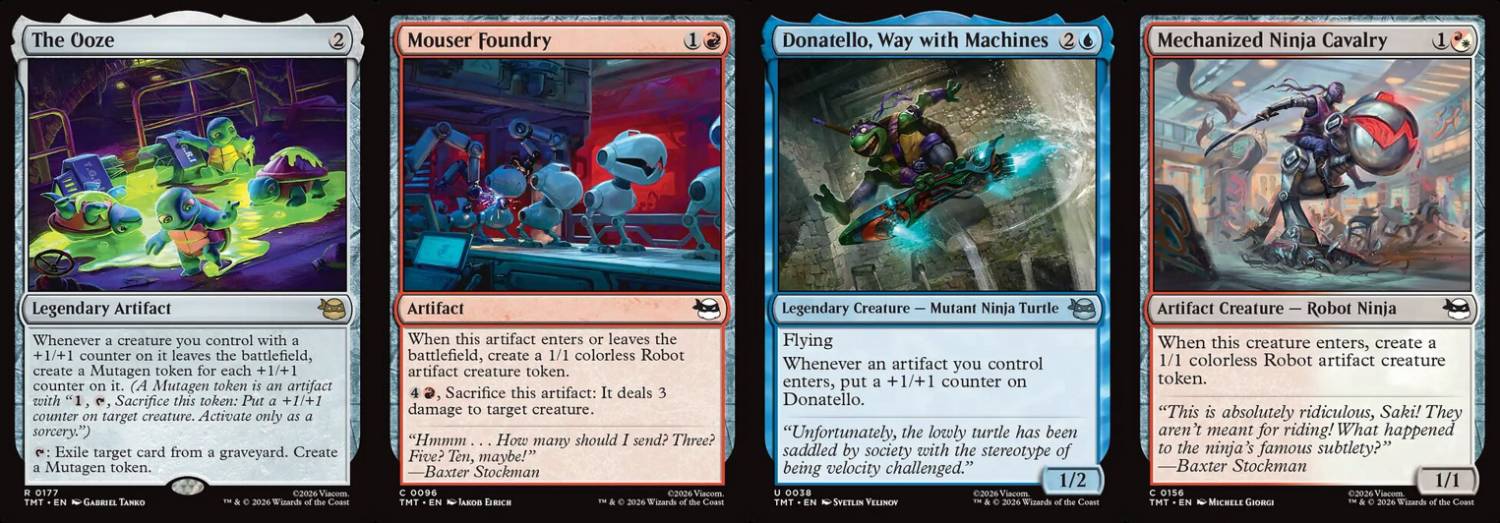 兩張藍紅雙色牌都與神器相關,因此我們知道TMT的藍紅色組是關注於神器主題。 Baxter Stockman