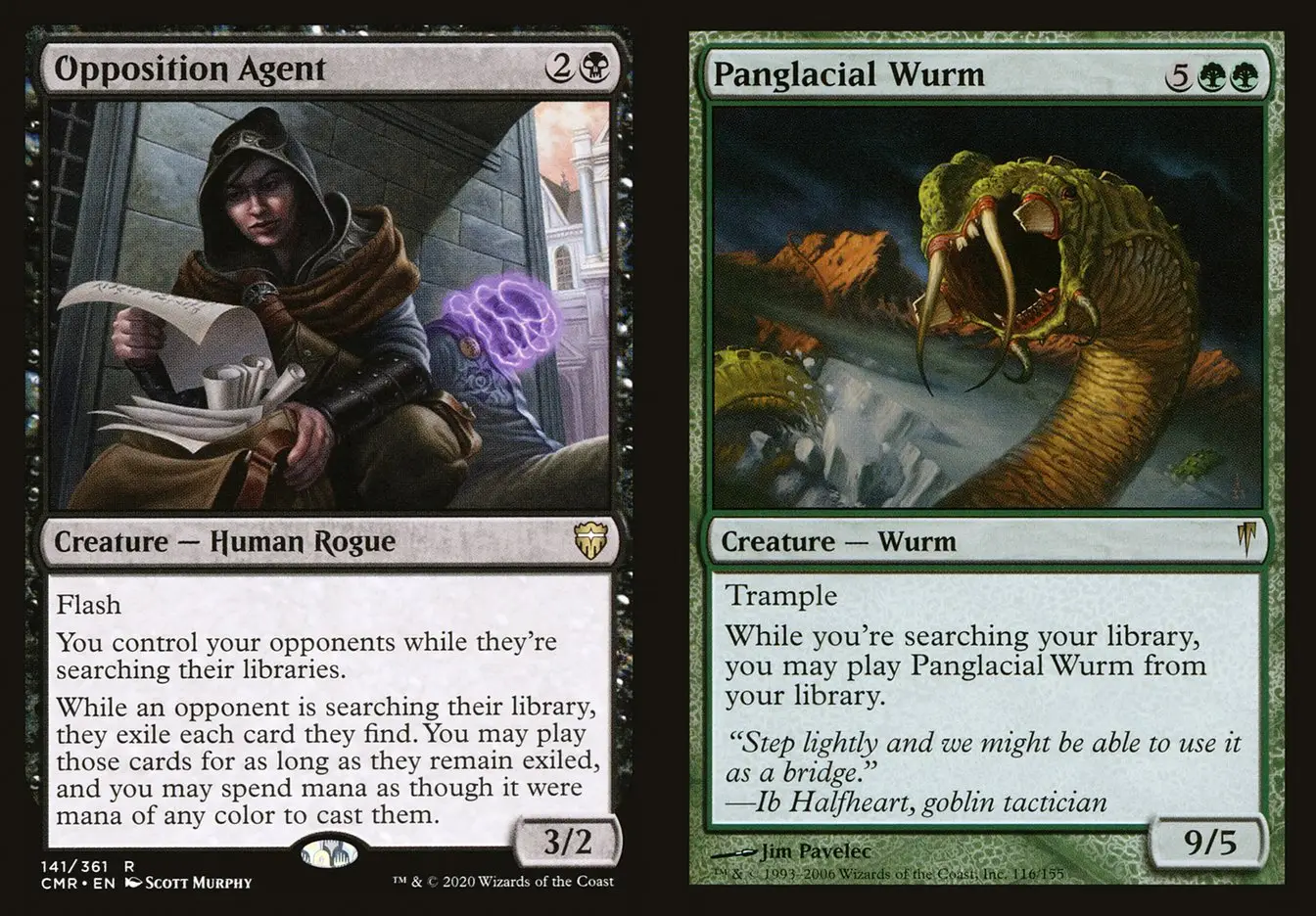 假設我有操控反對派密探,對手的牌庫中有跨冰河亞龍,且可產出足夠施放它的Mana,當對手起動找地地搜尋牌庫時,搜尋牌庫期間對手將由我來操控,由於牌的擁有者與搜尋牌庫的異能操控者都還是對手,這滿足跨冰河亞龍的條件 「 當 你 搜尋 你 的牌庫時 」 ,我可以操控對手宣告要施放跨冰河亞龍,並起動魔法力異能來支付費用,當然因為這是對手施放的咒語,所以生物操控權還在對手身上,不過對手可能只是想找個地,Mana就莫名其妙的被消耗掉了。