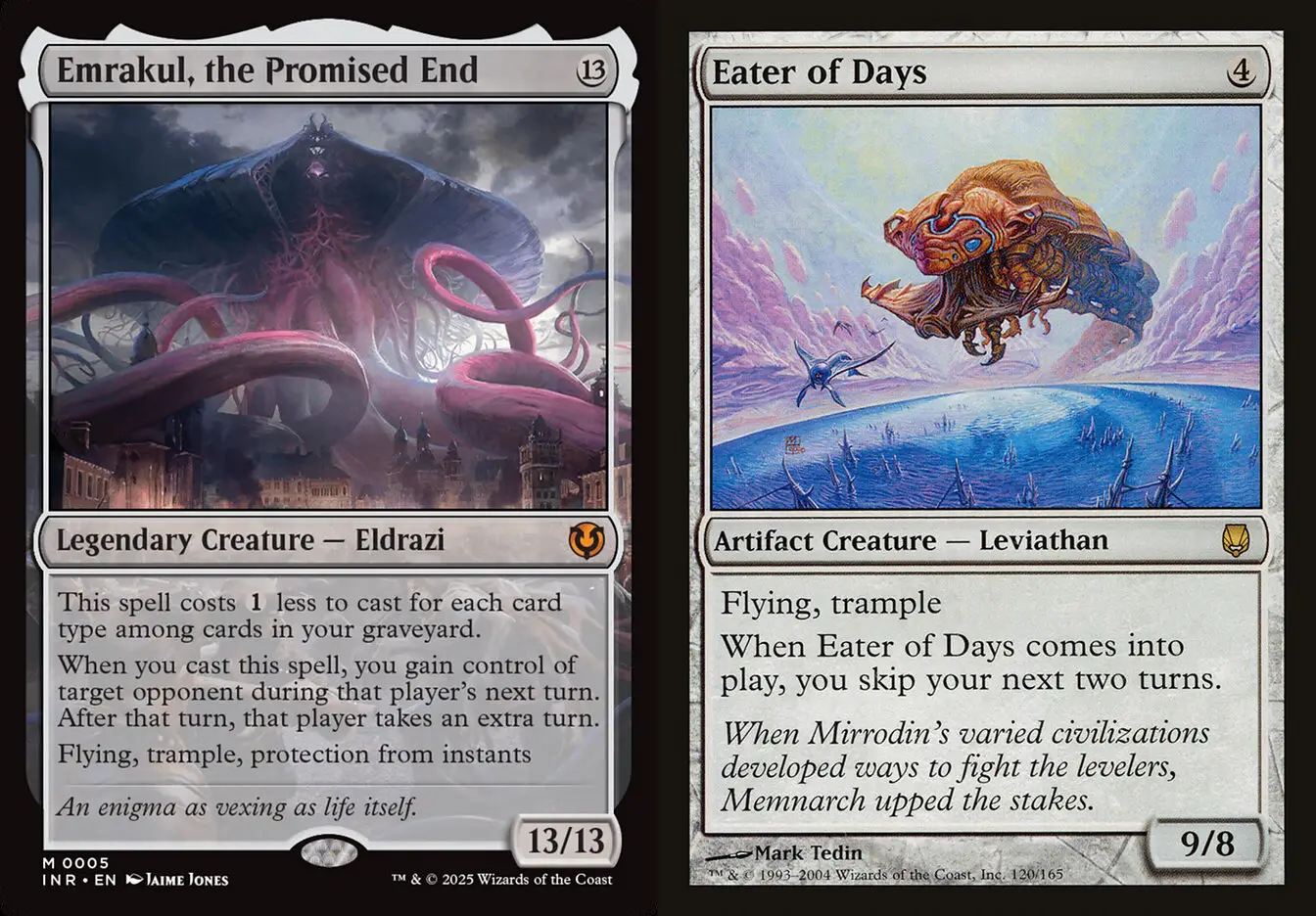 若是問近代範圍的牌池中,哪張牌在規則層面上有最高的複雜度,我會說是跨冰河亞龍,這張牌的效果極其抽象,甚至細節的運作原理不是寫在MTG的CR規則書本身,而是這張牌的單卡判例上。MTG的首席設計師Maro也明確表示過,跨冰河亞龍的運作會產生太多問題,因此今後不會設計類似效應單卡。