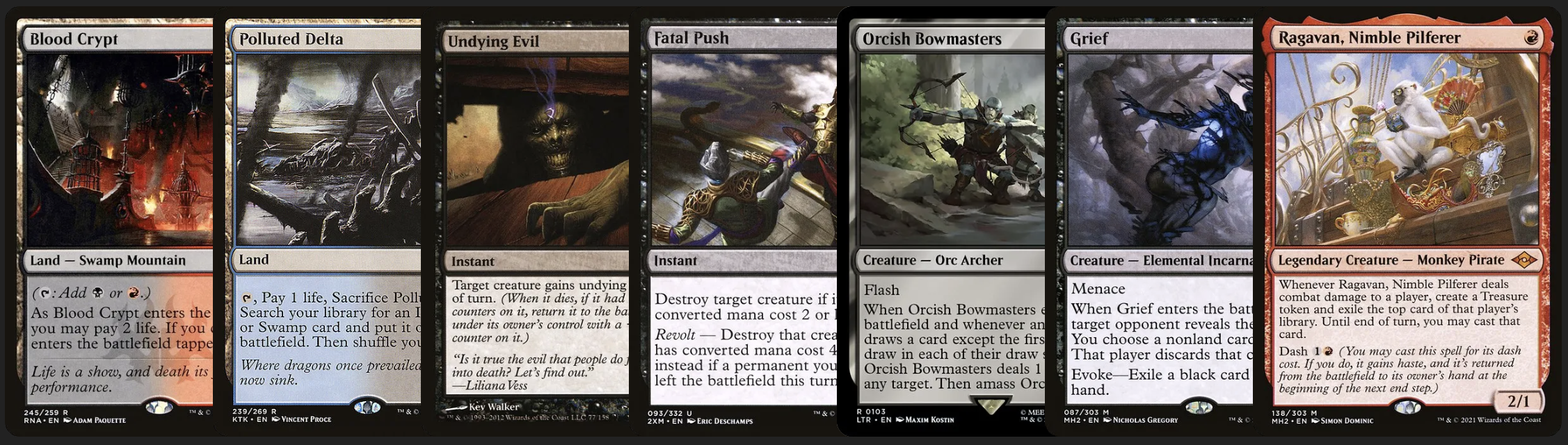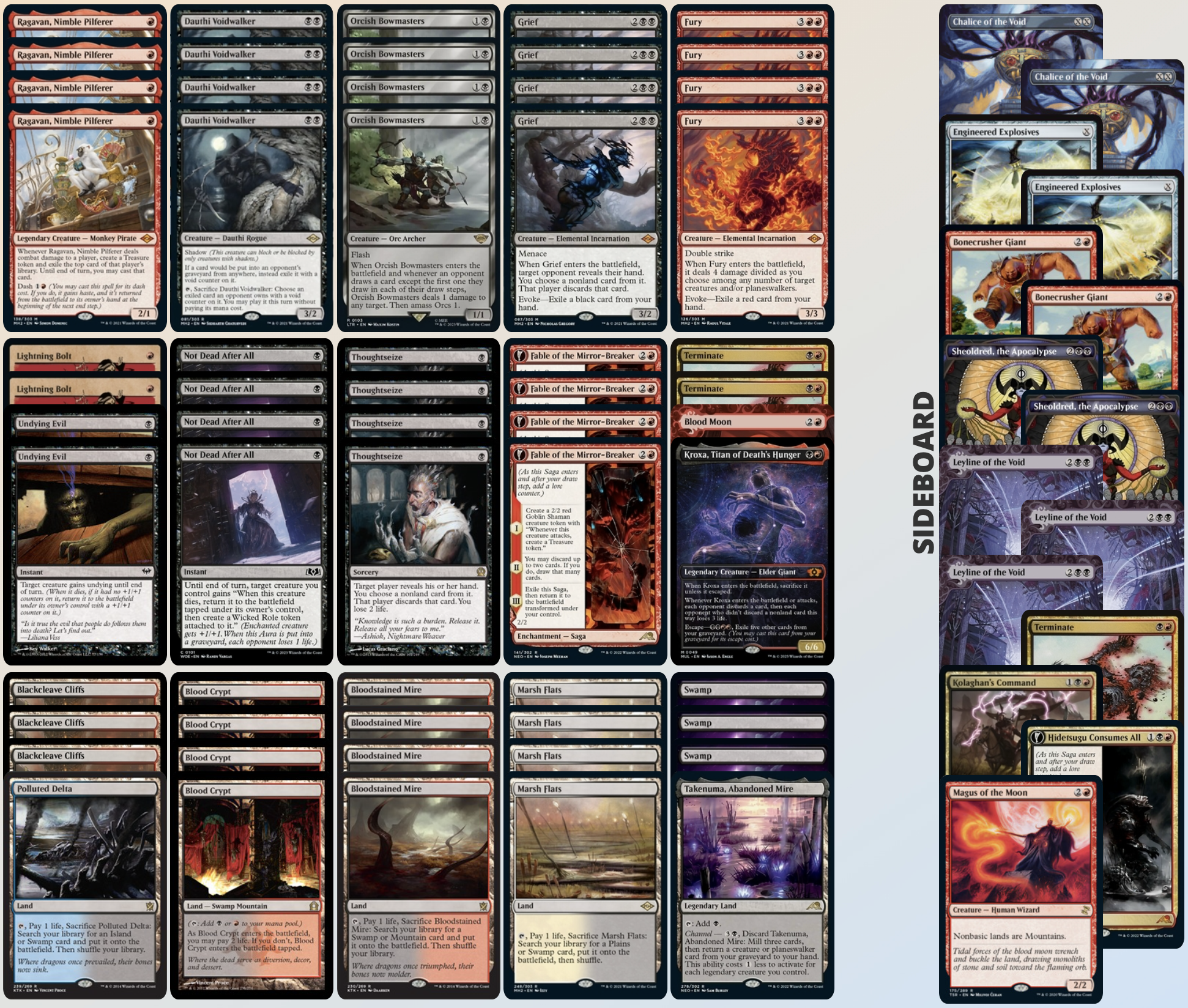 先說說 Scam,在 LTR 出了一張 Orcish Bowmasters 後強勢登頂,以往最怕對手中期爆發拉開的資源差,現在對手在利用抽牌手段拉開資源時還要承受著比以往多的風險,抽越多痛越多越早被對手 call game。