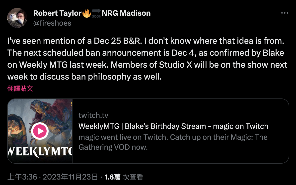 就在撰文後,有官方來源表示 12/4 會有新的禁卡表公告。