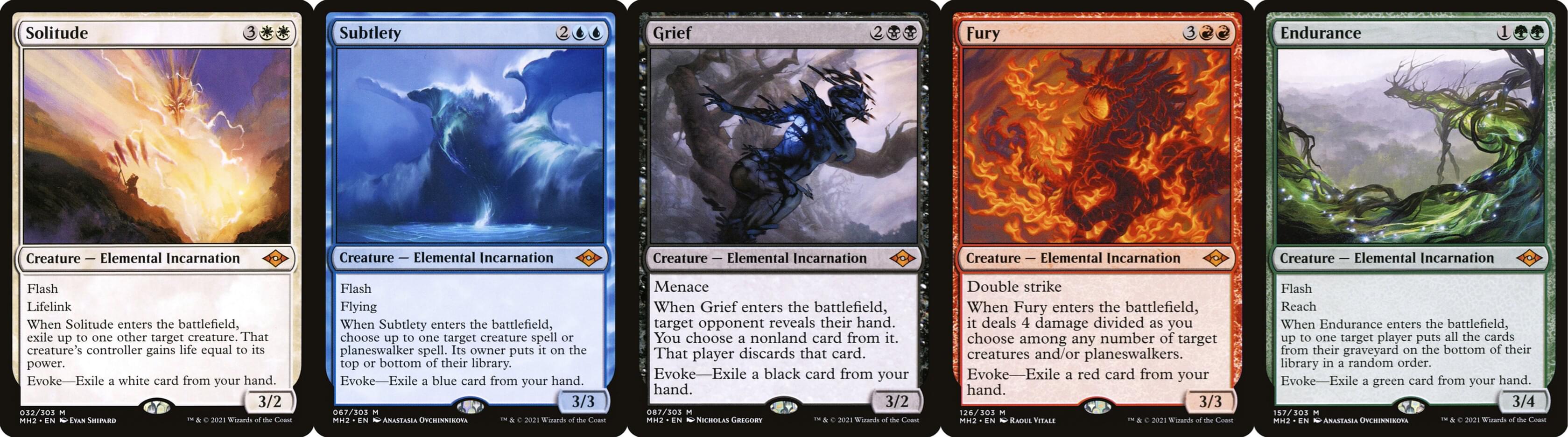 但老威在免費咒語的路上越走越歪,MH2 中除了將 Shardless Agent 下放到近代中使得 cascade 的系統更加完整、還加入了另一個更加強力的免費咒語循環:呼魂元素。
